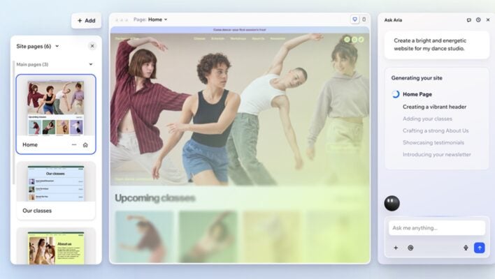Wix Harmony is built around Aria, a new AI agent that is capable of processing natural language and executing complex tasks, including generating layouts, page copy, components and design assets. It is built on top of Wix’s existing backend architecture, meaning that any changes it rolls out will not break code, add bugs, or affect the site’s functionality in another location.
